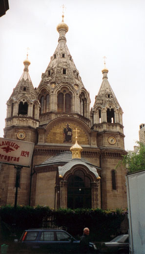 Cathédrale Orthodoxe St. Alexandre Nevsky. 12 Rue Daru, Paris. The entrance had a sign with the request not to take pictures inside, so we didn't take more then this picture. When we entered there was a mass going on. We were very impressed with the Gregorian music. Not so much with the priest and his audience. |