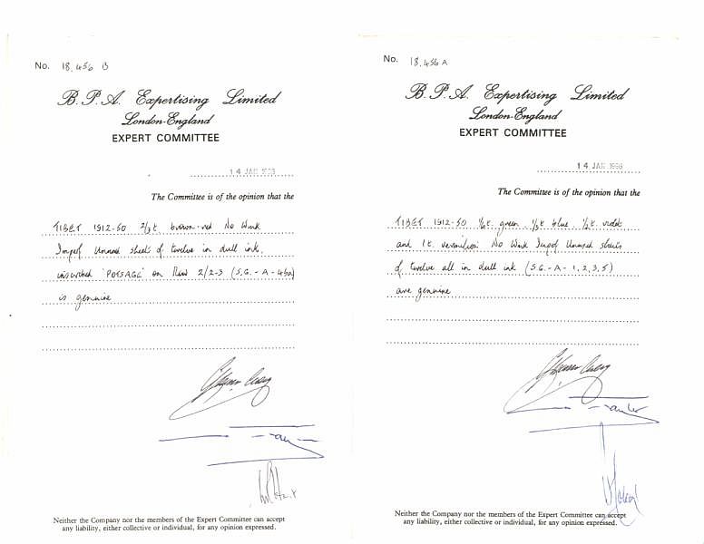 B.P.A Expertising Limited Expert Committee Certification of Tibet Stamps Original Sheets